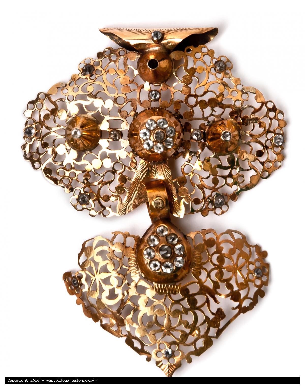 Rare croix de Rouen en plaqué or et strass - ces croix sont presque toujours en or, très peu en plaqué or n(ont survécu.