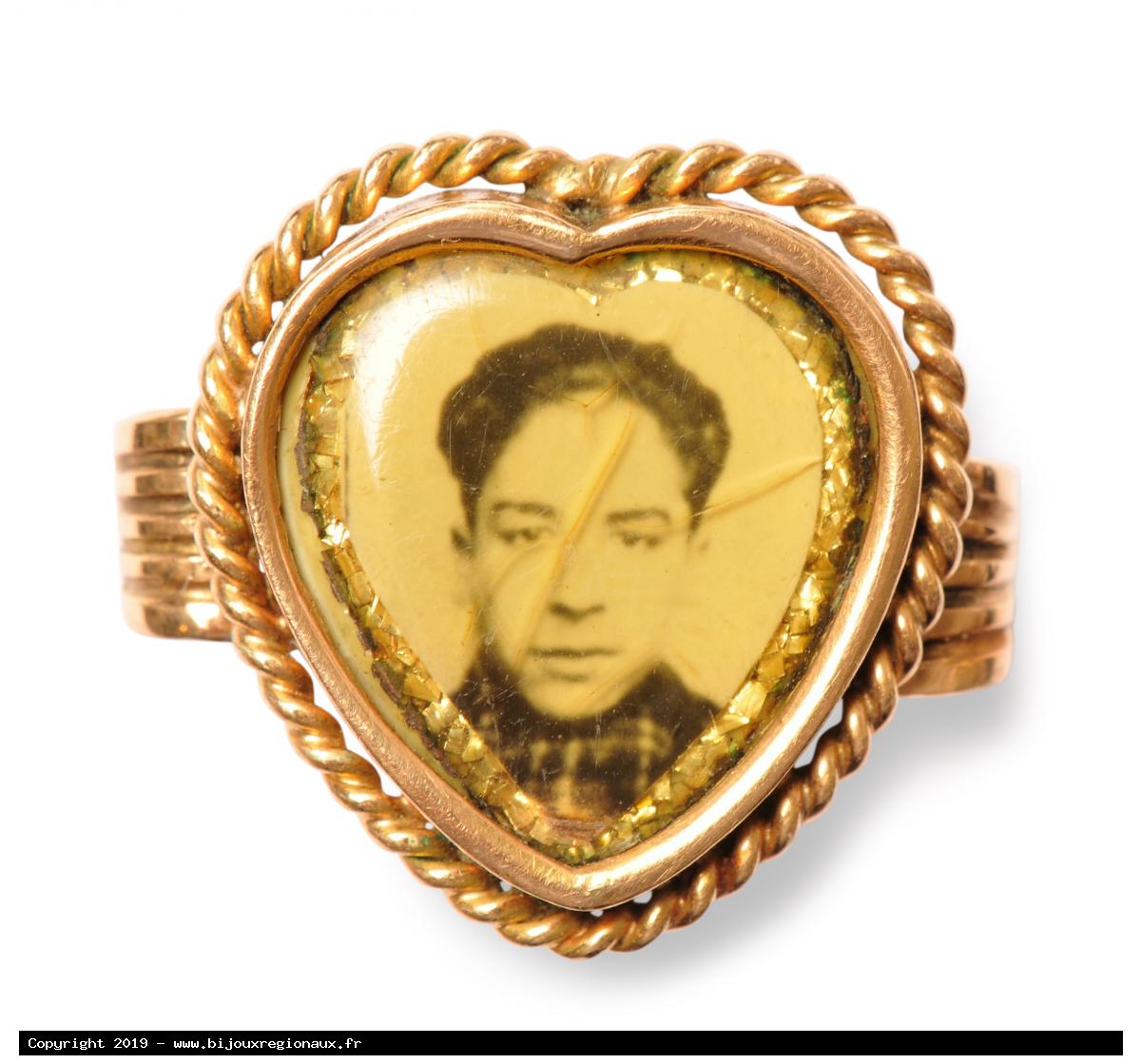 Broche et bague porte photo en or