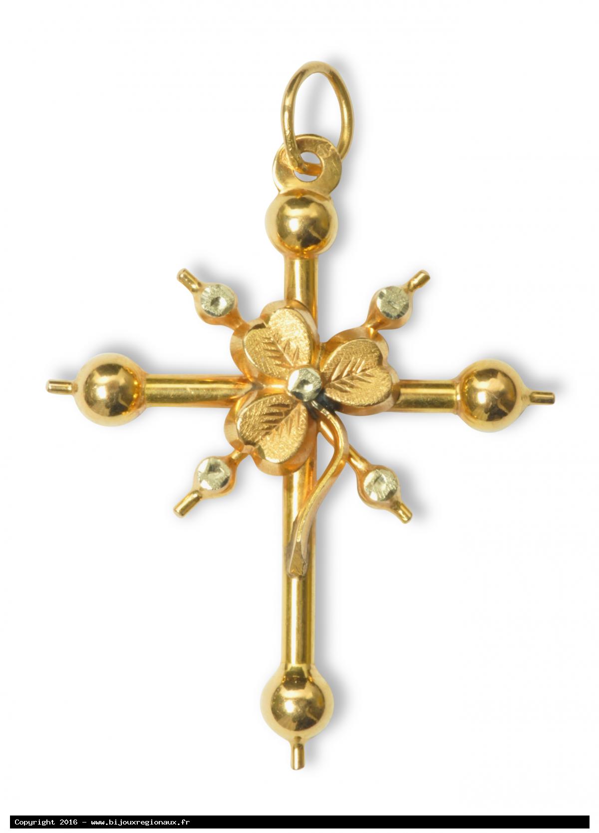 Although some very old flowered crosses are known, dating from the Sard period, most are more recent, having been re-introduced by the Sainson family of jewelers in Grenoble around 1880. The design is based on a baton cross which has an embellishment at the centre. A few examples based on a flat cross are known and appear to be the older versions.