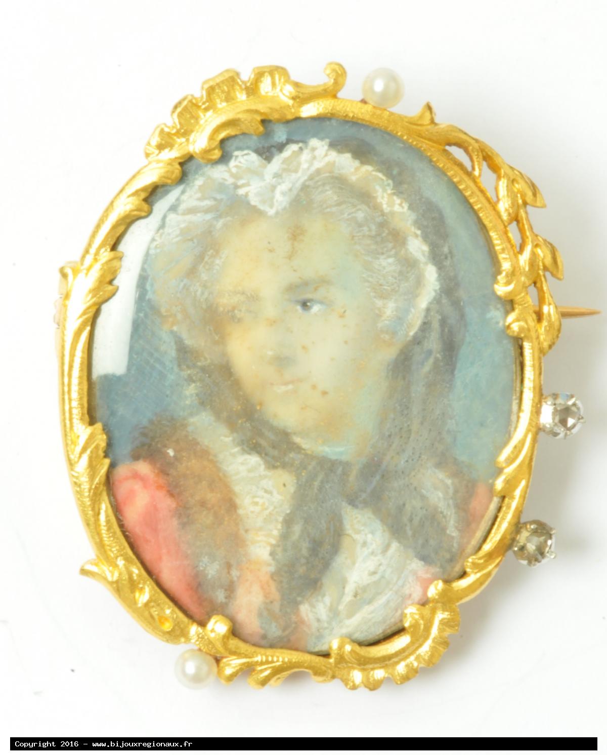 antique French gold brooch with miniature