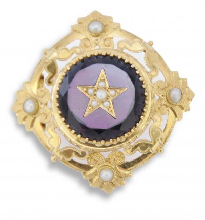 ![]() antique gold brooch set with a garnet and a pearl |