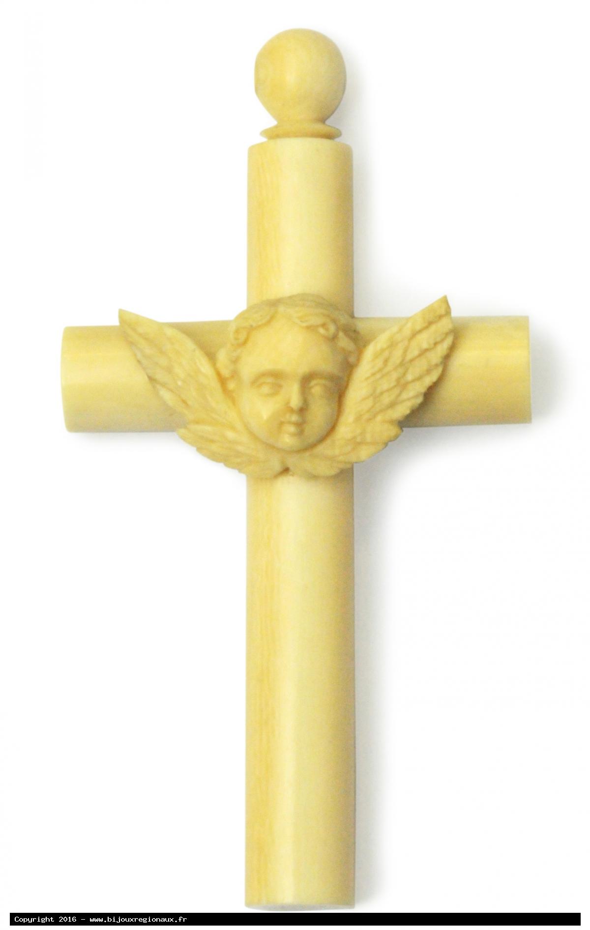 Les croix de baptême en ivoire ou en Galalithe sans anneau de suspension ne sont pas nécessairement incomplètes : l'anneau était vendu en option et beaucoup préféraient s'en passer pour suspendre la croix directement sur un ruban. Galalith (ou Erinoid en Angleterre), du mot grec gala - lait - et lithos - pierre, était un des premiers plastiques inventés ; il est composé de caséine de lait et formaldéhyde.